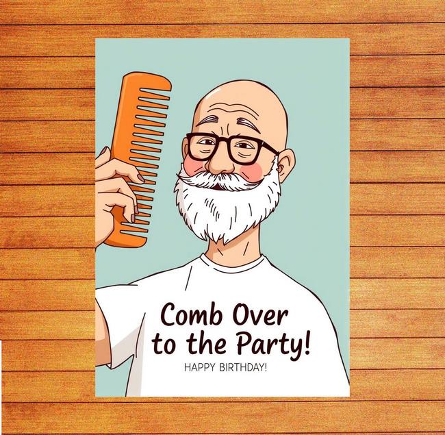Comb over to the party2 Greeting card. Size, 148 x 210 millimetres. Please include the exact greeting you want inside by including it in the text box above- we will handwrite this for you. Also include the name and address of the person you wish to send it to