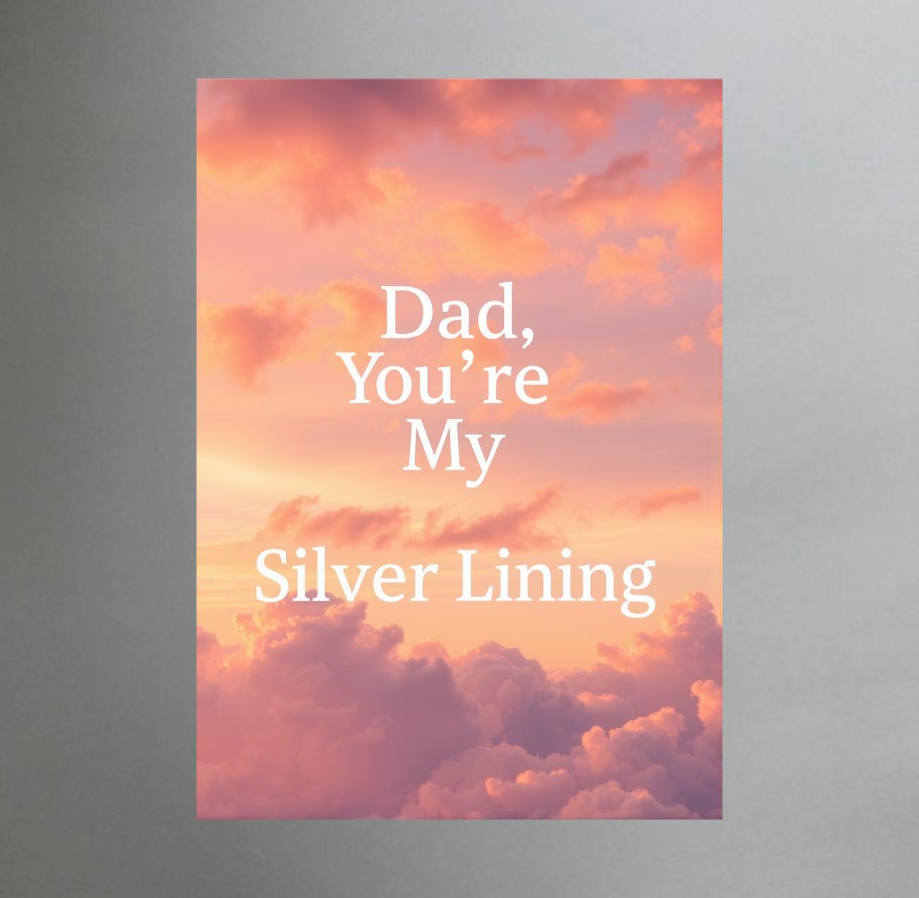Dad your my silver lining Greeting card. Size, 148 x 210 millimetres. Please include the exact greeting you want inside by including it in the text box above- we will handwrite this for you. Also include the name and address of the person you wish to send it to