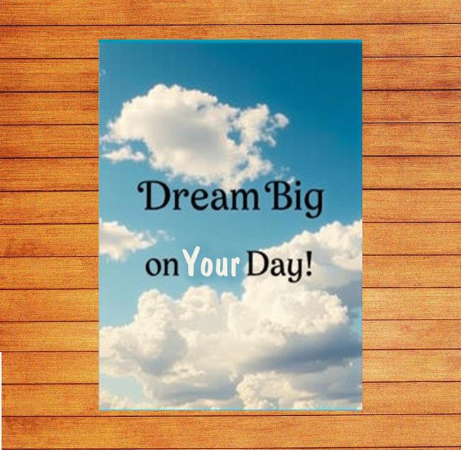 Dream big on your day Greeting card. Size, 148 x 210 millimetres. Please include the exact greeting you want inside by including it in the text box above- we will handwrite this for you. Also include the name and address of the person you wish to send it to