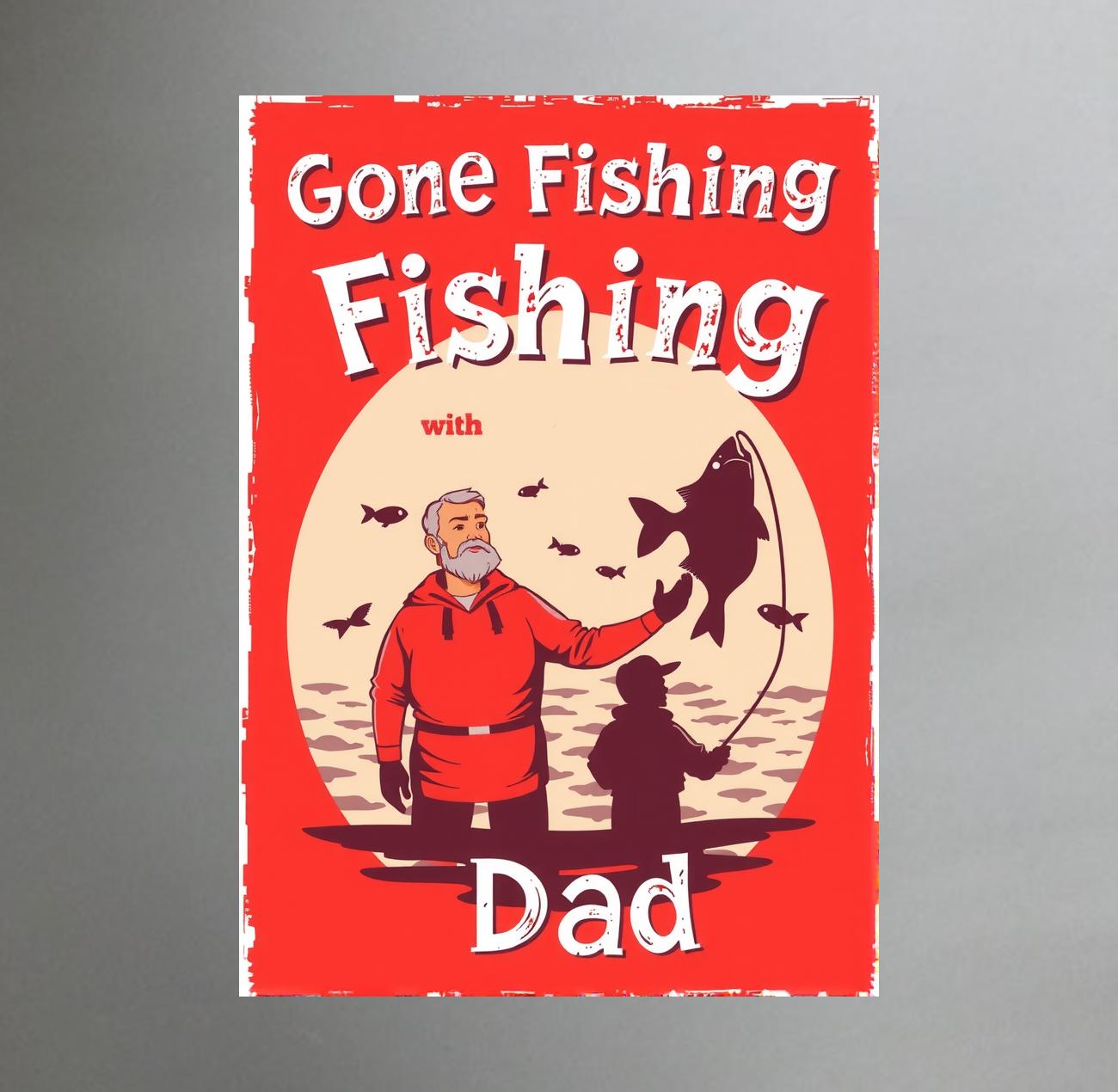Gone fishing with dad Greeting card. Size, 148 x 210 millimetres. Please include the exact greeting you want inside by including it in the text box above- we will handwrite this for you. Also include the name and address of the person you wish to send it to