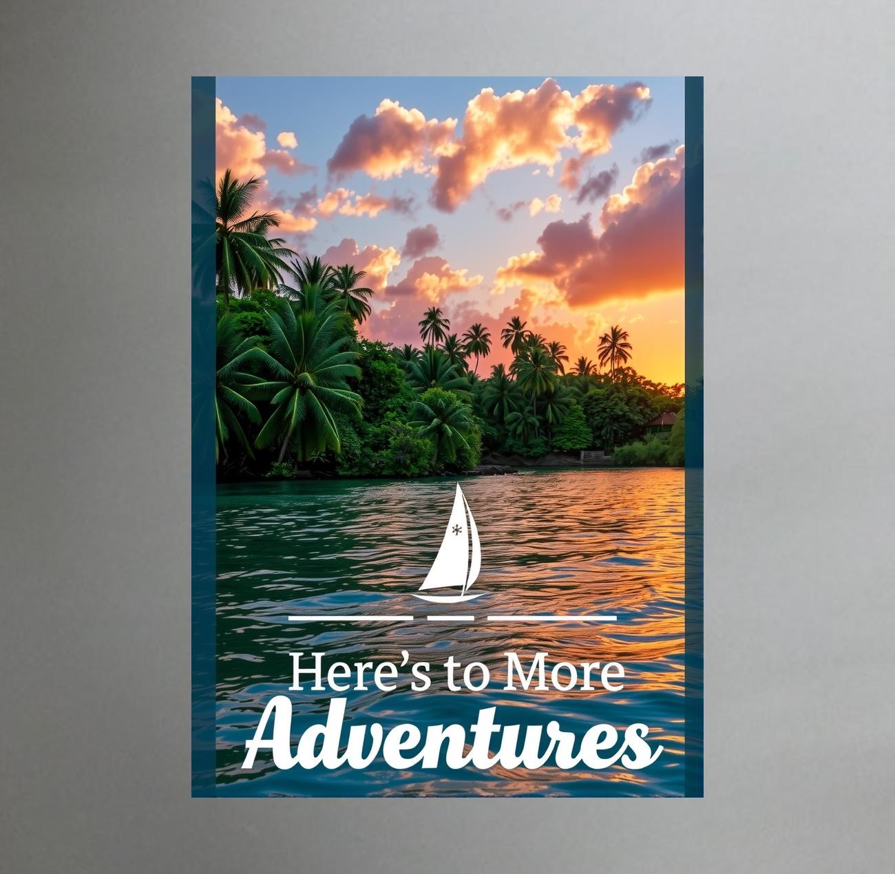 Heres to more adventures Greeting card. Size, 148 x 210 millimetres. Please include the exact greeting you want inside by including it in the text box above- we will handwrite this for you. Also include the name and address of the person you wish to send it to