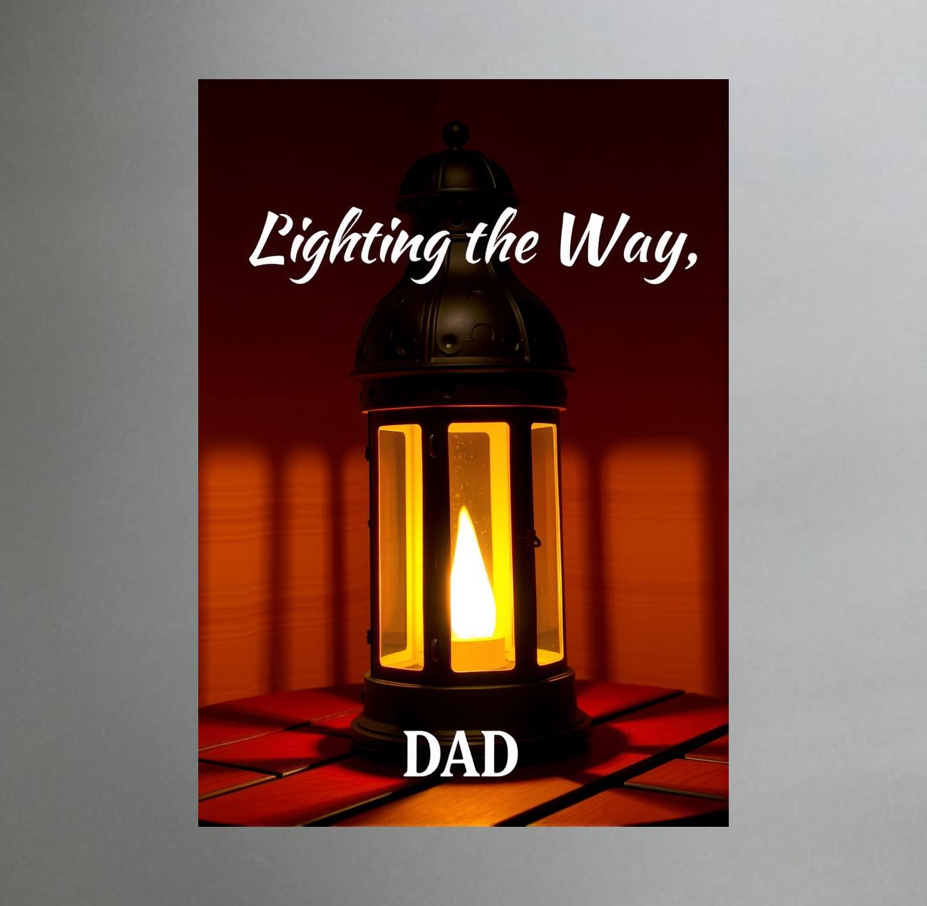 Lighting the way dad Greeting card. Size, 148 x 210 millimetres. Please include the exact greeting you want inside by including it in the text box above- we will handwrite this for you. Also include the name and address of the person you wish to send it to