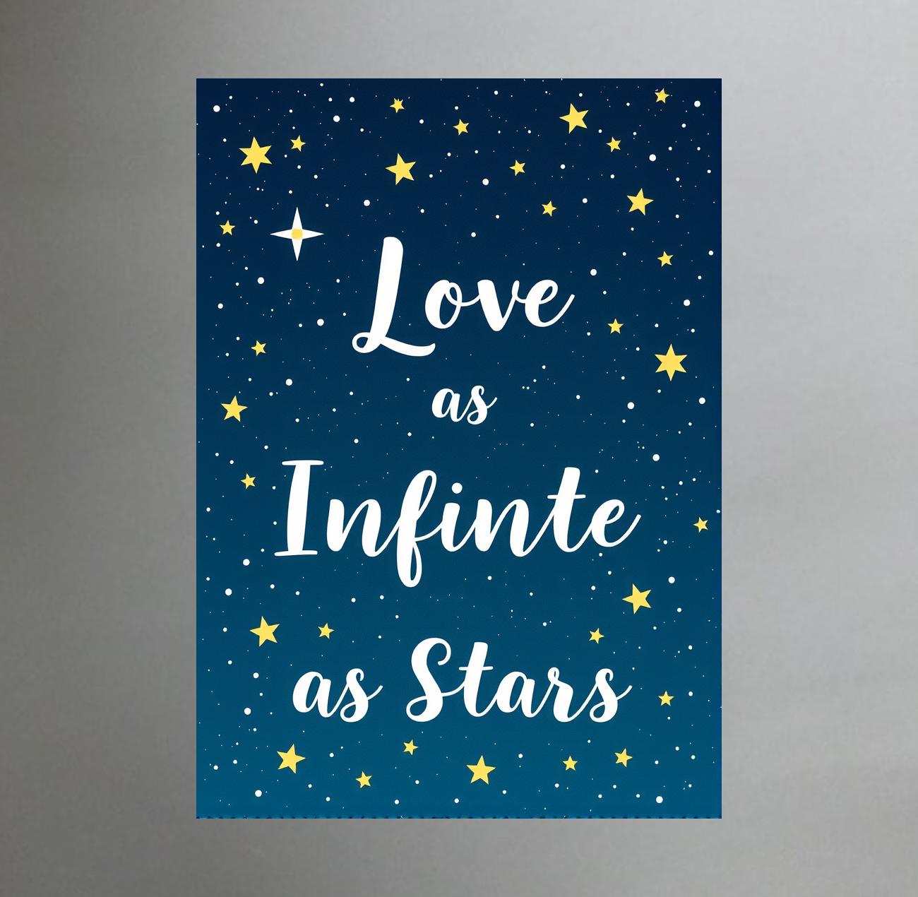Love as infinate as stars Greeting card. Size, 148 x 210 millimetres. Please include the exact greeting you want inside by including it in the text box above- we will handwrite this for you. Also include the name and address of the person you wish to send it to