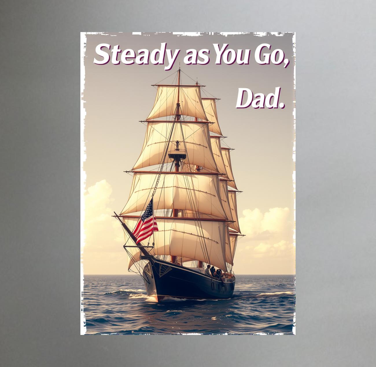 Steady as you go dad Greeting card. Size, 148 x 210 millimetres. Please include the exact greeting you want inside by including it in the text box above- we will handwrite this for you. Also include the name and address of the person you wish to send it to