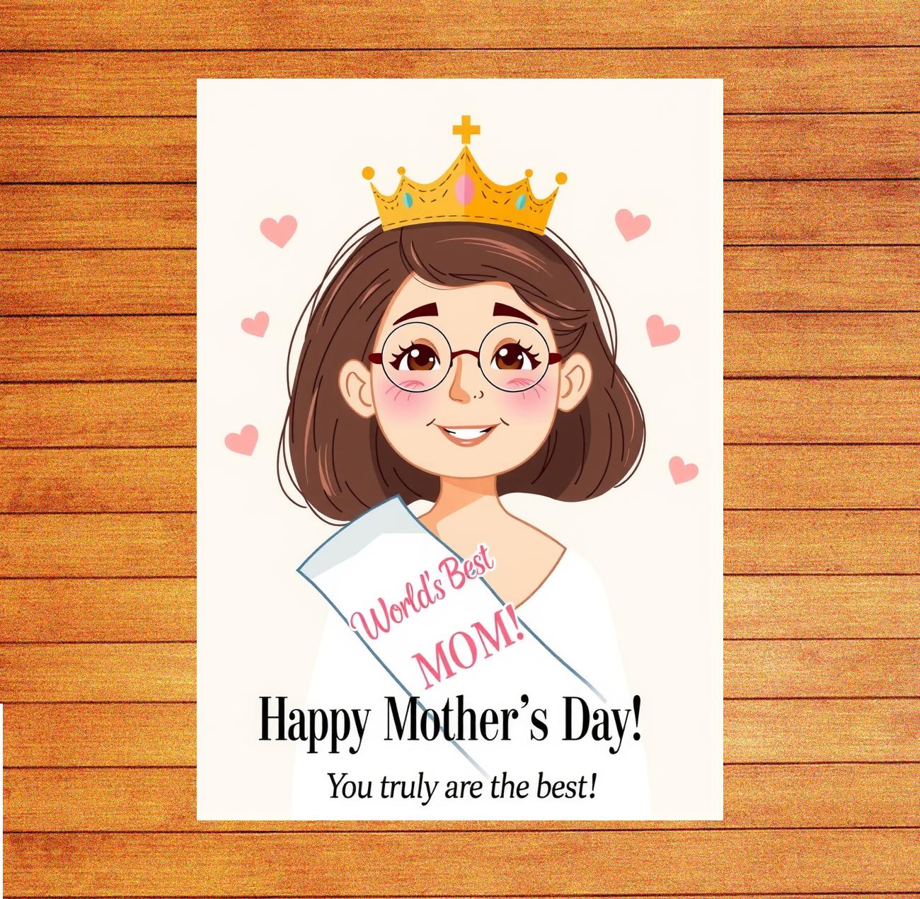 Worlds best mom Greeting card. Size, 148 x 210 millimetres. Please include the exact greeting you want inside by including it in the text box above- we will handwrite this for you. Also include the name and address of the person you wish to send it to