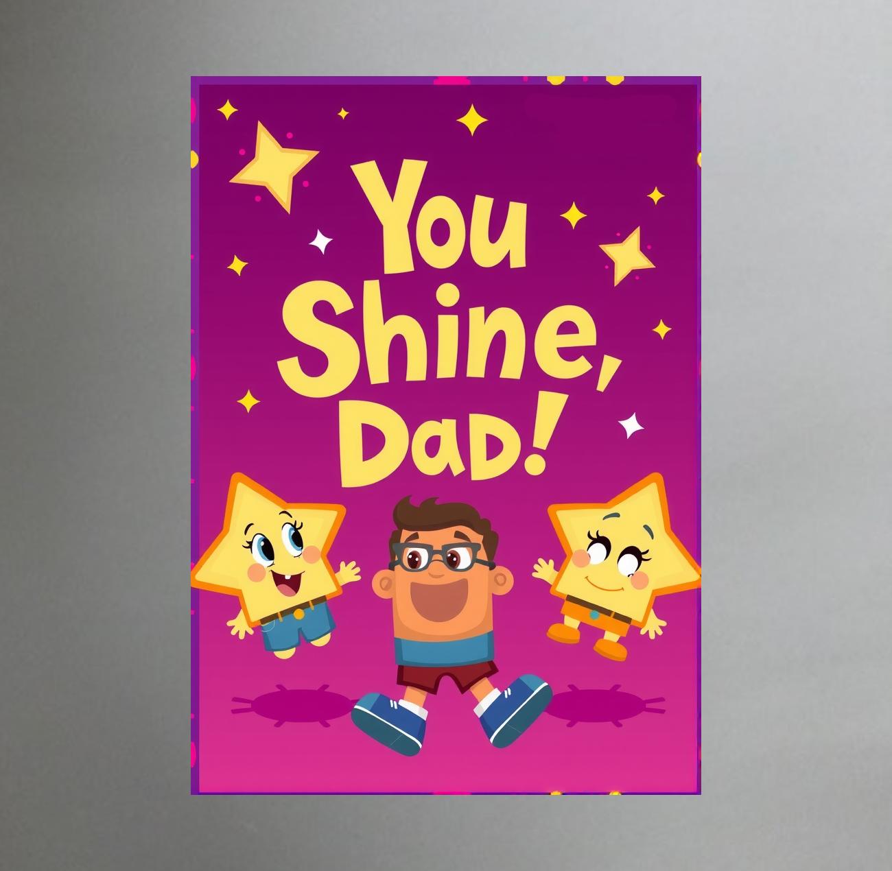 You shine dad Greeting card. Size, 148 x 210 millimetres. Please include the exact greeting you want inside by including it in the text box above- we will handwrite this for you. Also include the name and address of the person you wish to send it to
