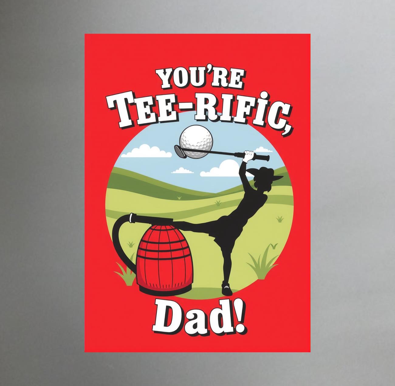 Your tee rific dad Greeting card. Size, 148 x 210 millimetres. Please include the exact greeting you want inside by including it in the text box above- we will handwrite this for you. Also include the name and address of the person you wish to send it to